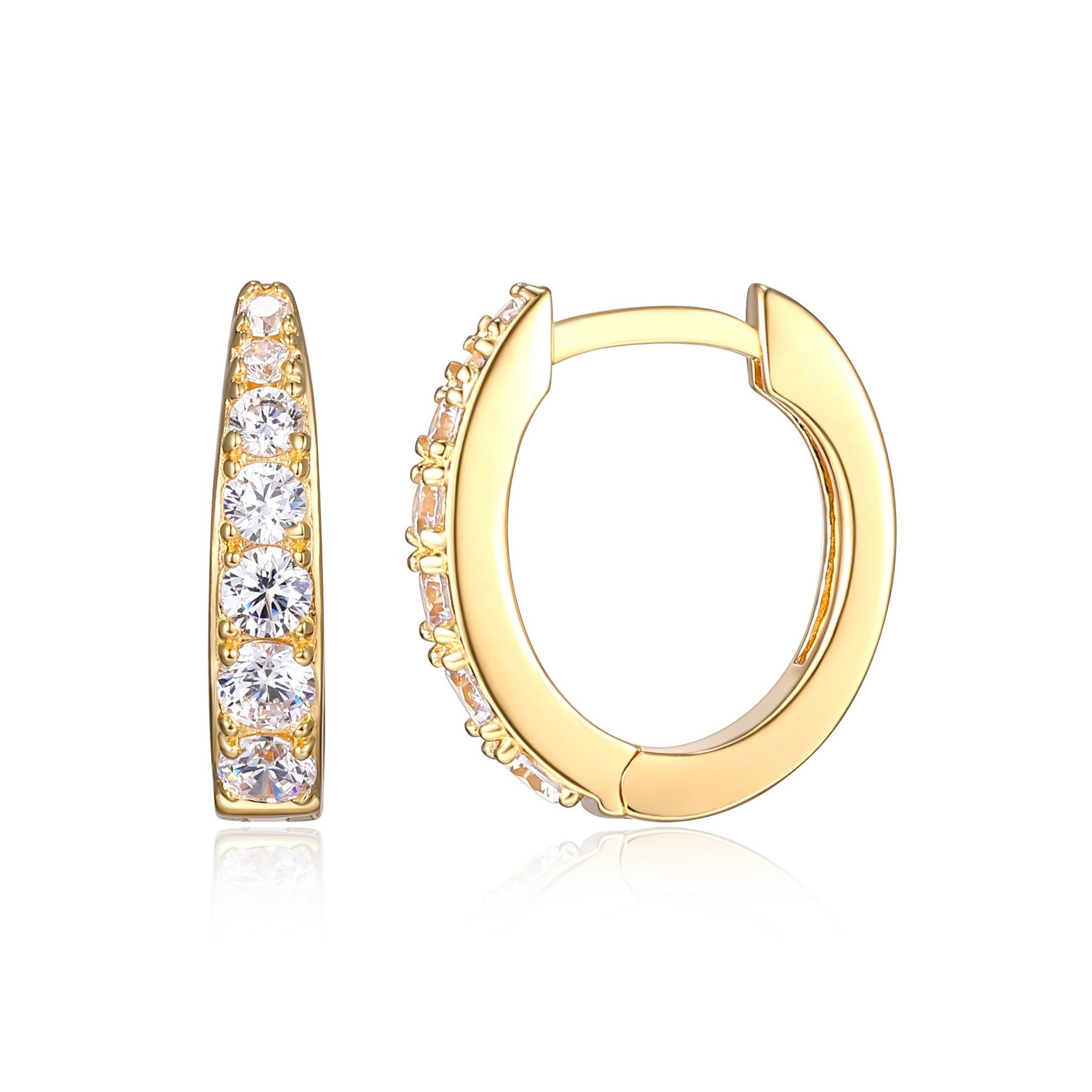 Boucles d'oreilles créoles ovales avec C.Z. - Reign - Argent plaqué 18kt jaune est en rupture de stock et sera envoyé dès qu'il sera disponible
