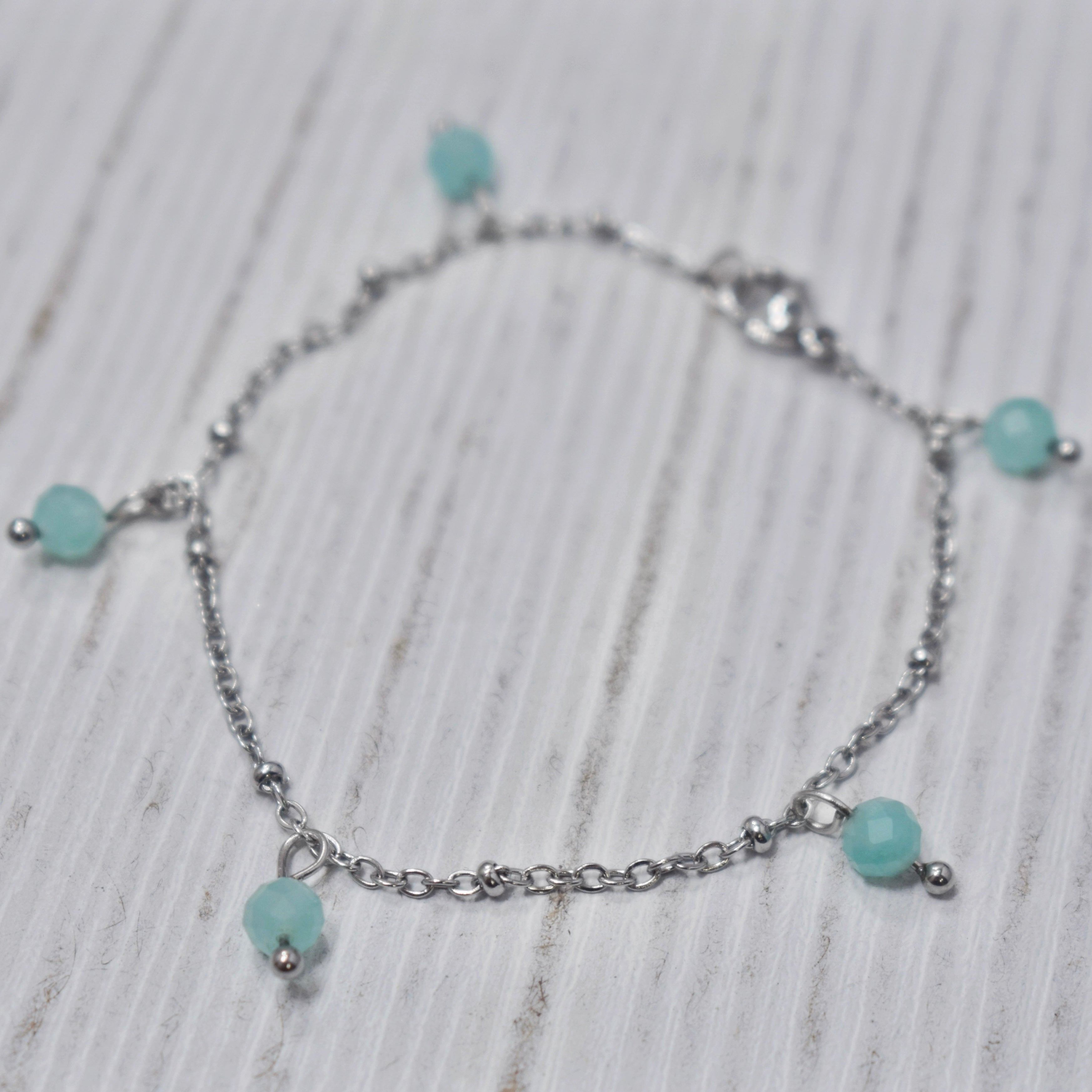 Bracelet avec Billes Amazonites en acier inoxydable