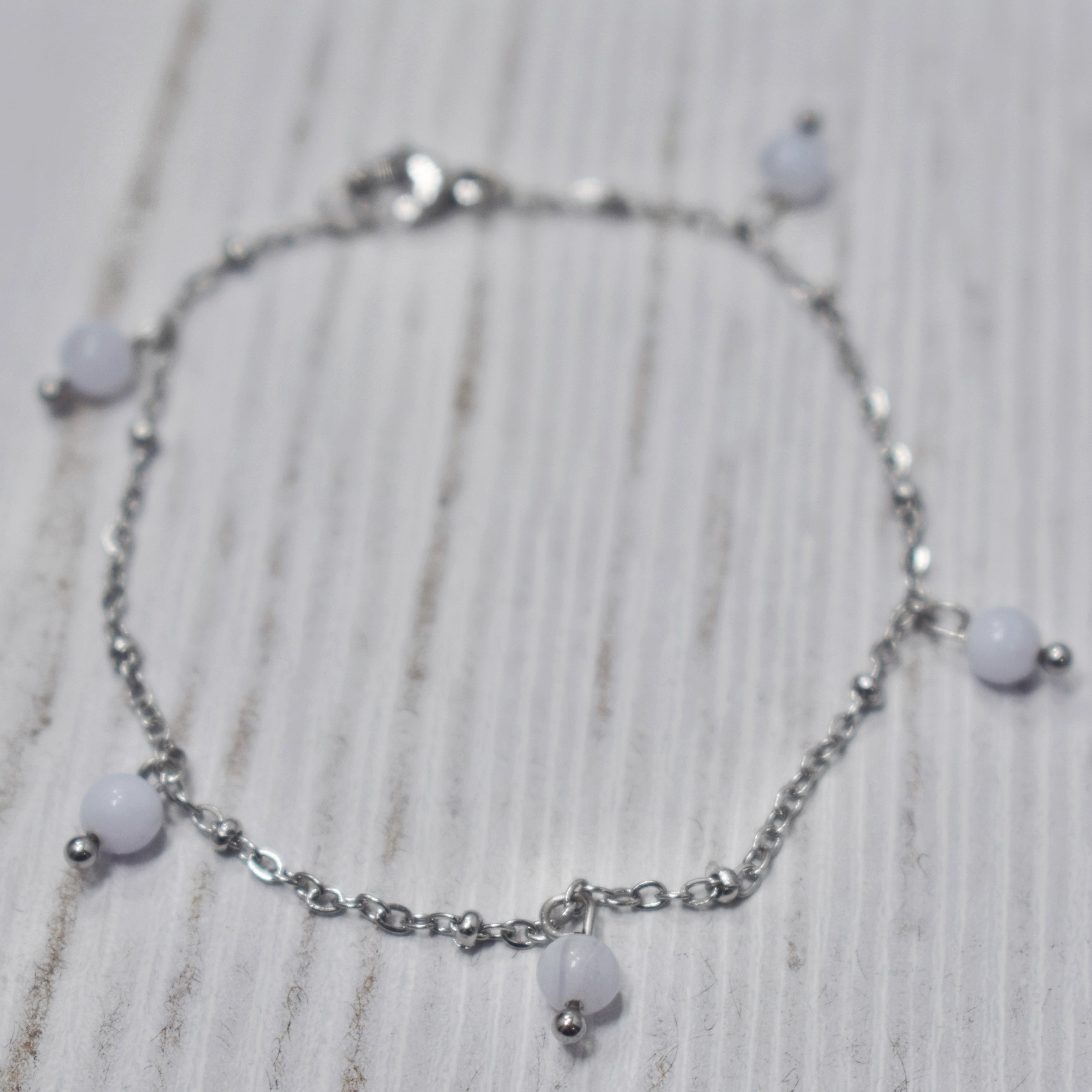 Bracelet avec Billes Blue Lace Agate en acier inoxydable