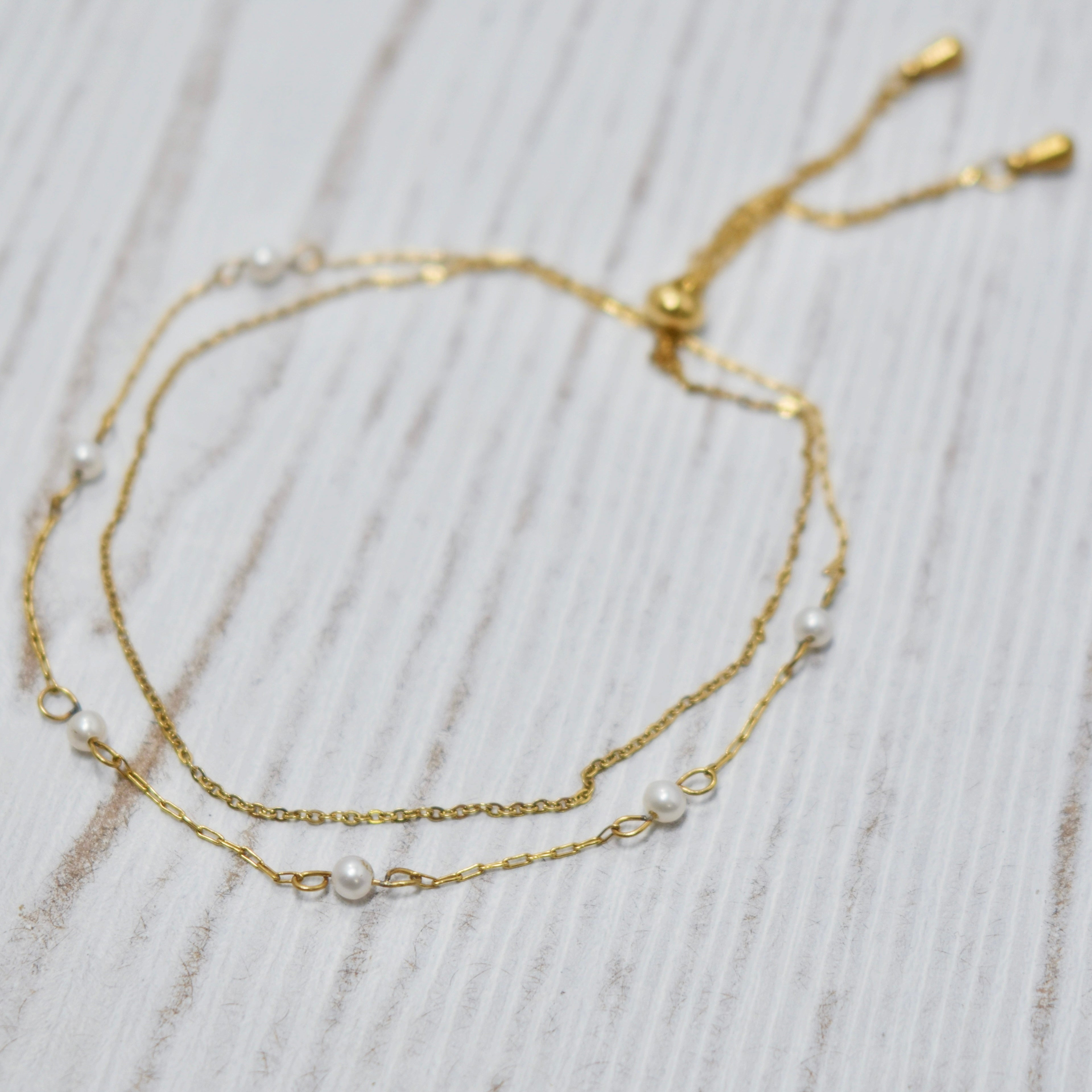 Bracelet avec Billes Perles d'Eau Douces en acier inoxydable plaqué jaune