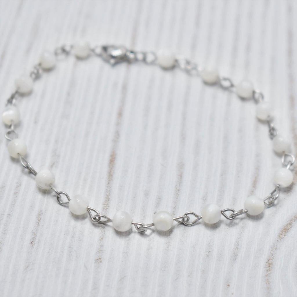 Bracelet Acier avec Billes Nacre de Perle