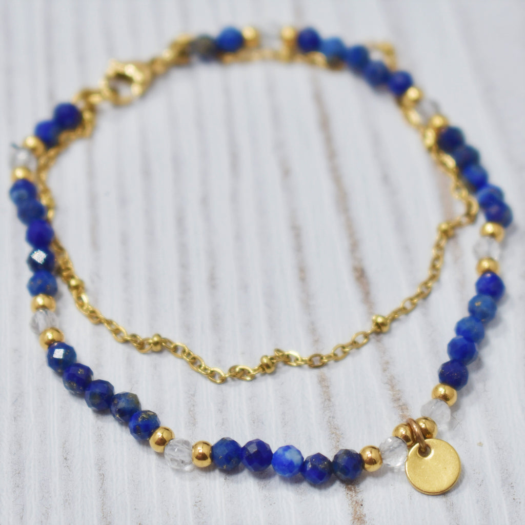 Bracelet Acier avec Billes Lapis Lazuli