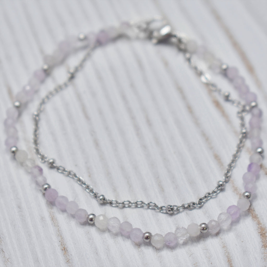 Bracelet Acier avec Billes Améthyste