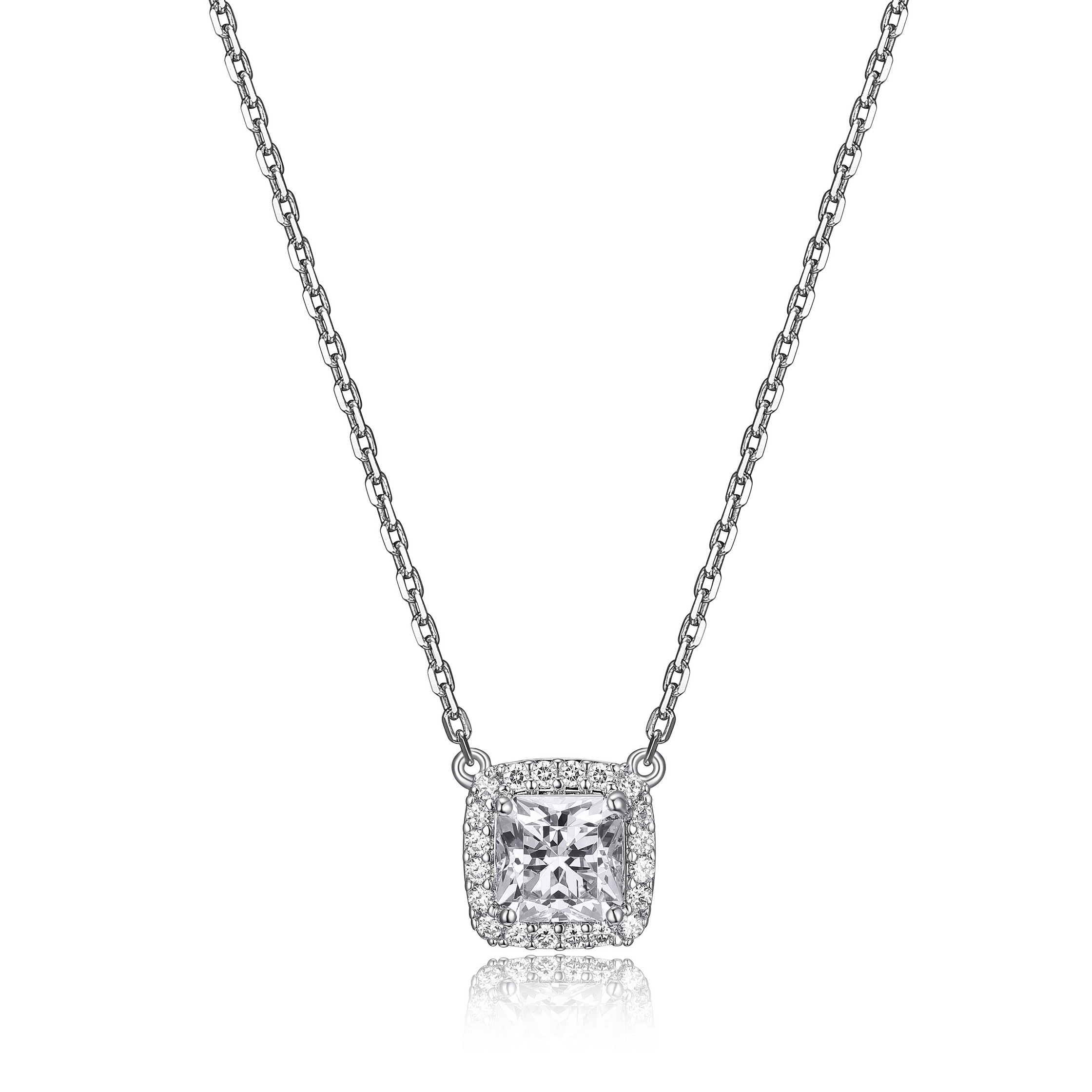 Collier '' Éclat Carré'', avec C.Z. REIGN- La Forge d'or - Argent rhodié est en rupture de stock et sera envoyé dès qu'il sera disponible