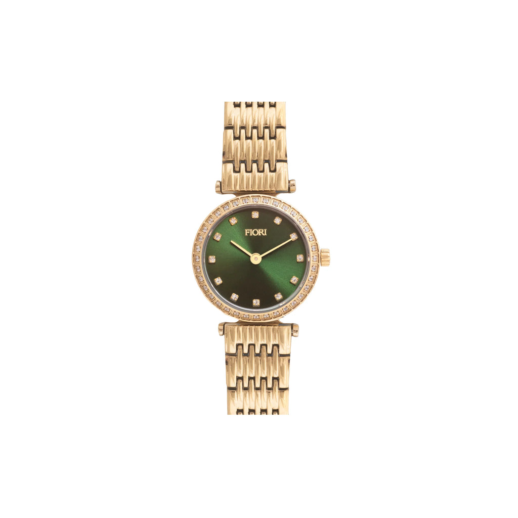 Montre Fiori Femme dorée, cadran Vert et C.Z.