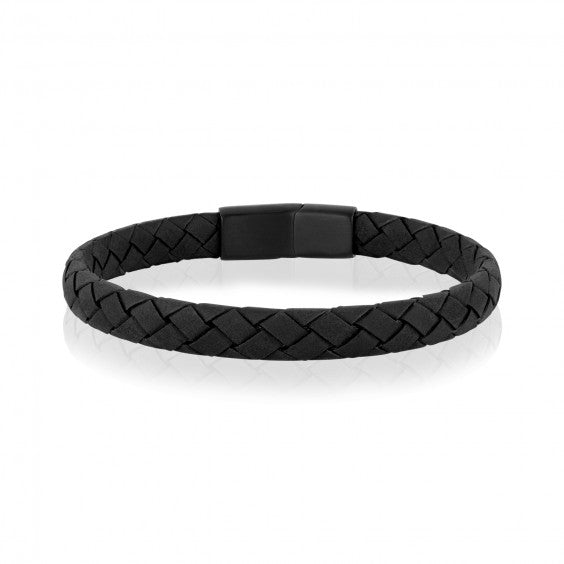 Bracelet A.R.Z. simple black leather steel AS-B195 - 8 is backordered and will ship as soon as it is back in stock.