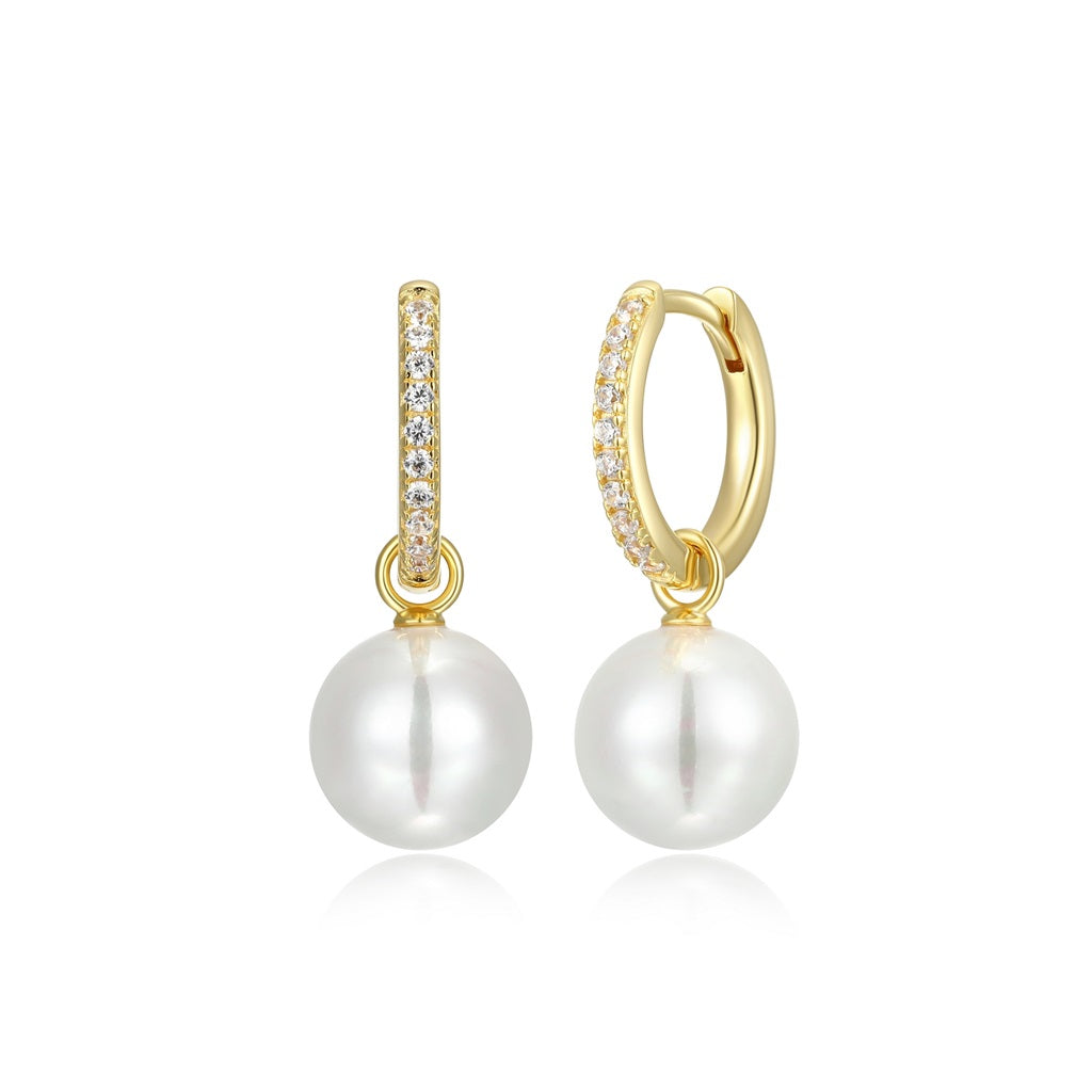 ''Huggies'' earrings with 9mm removable pearl, zircons in 925 silver plated 18kt yellow