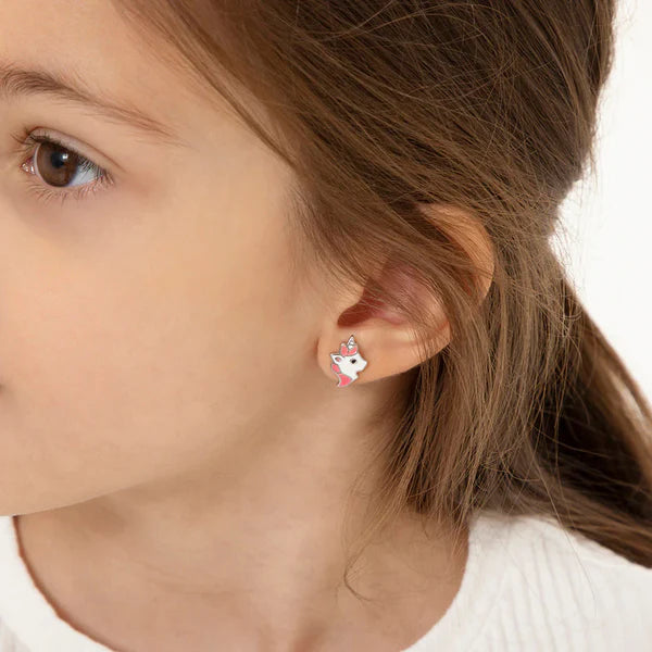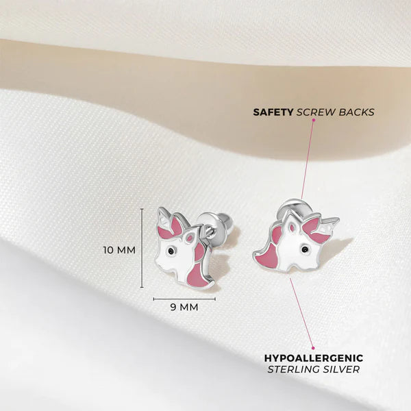 Boucles d'oreilles en argent 925 ''Licorne rose'', avec papillons vissés, In Season