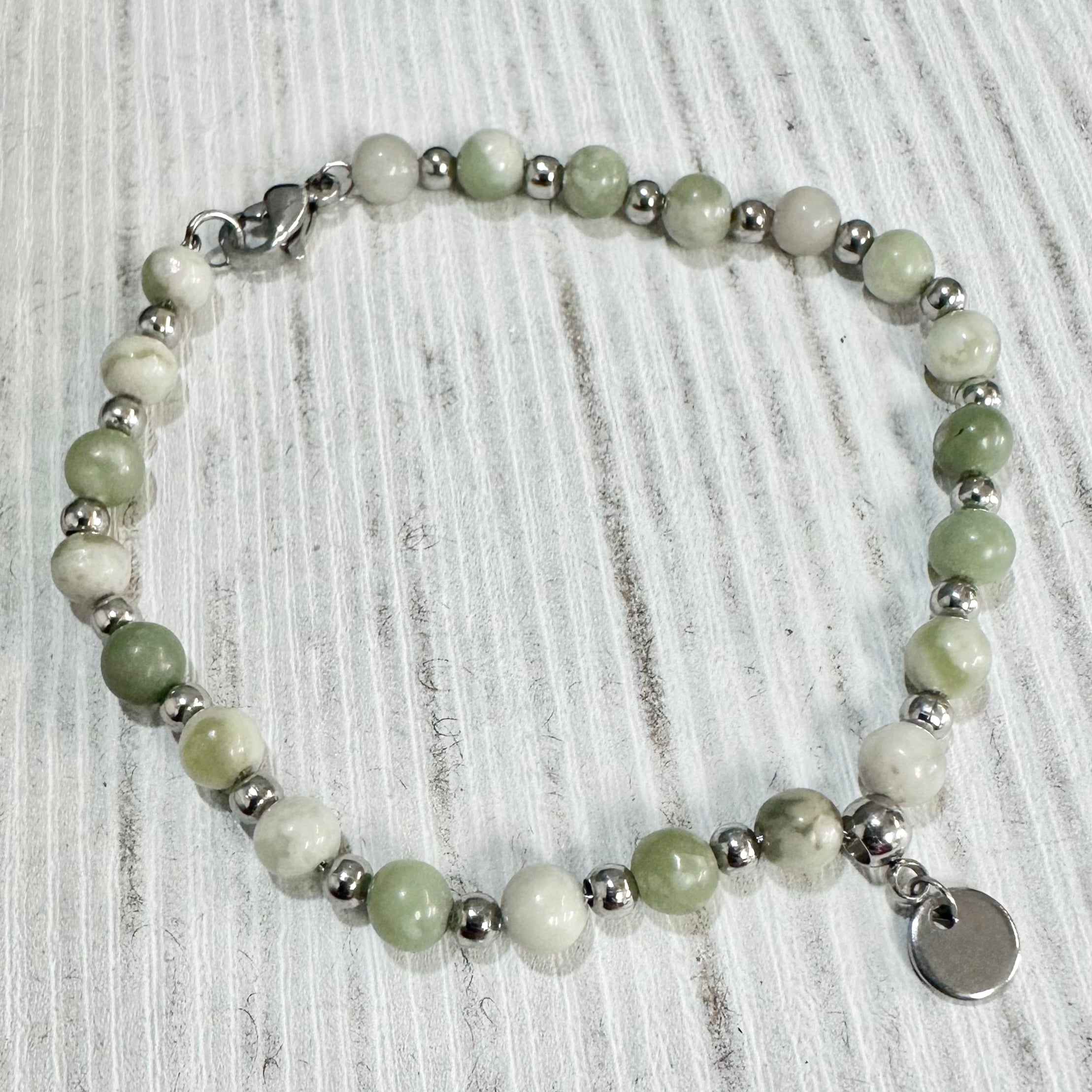 - Billes de Jades de 4mm enfilées sur une chaine en acier inoxydable
